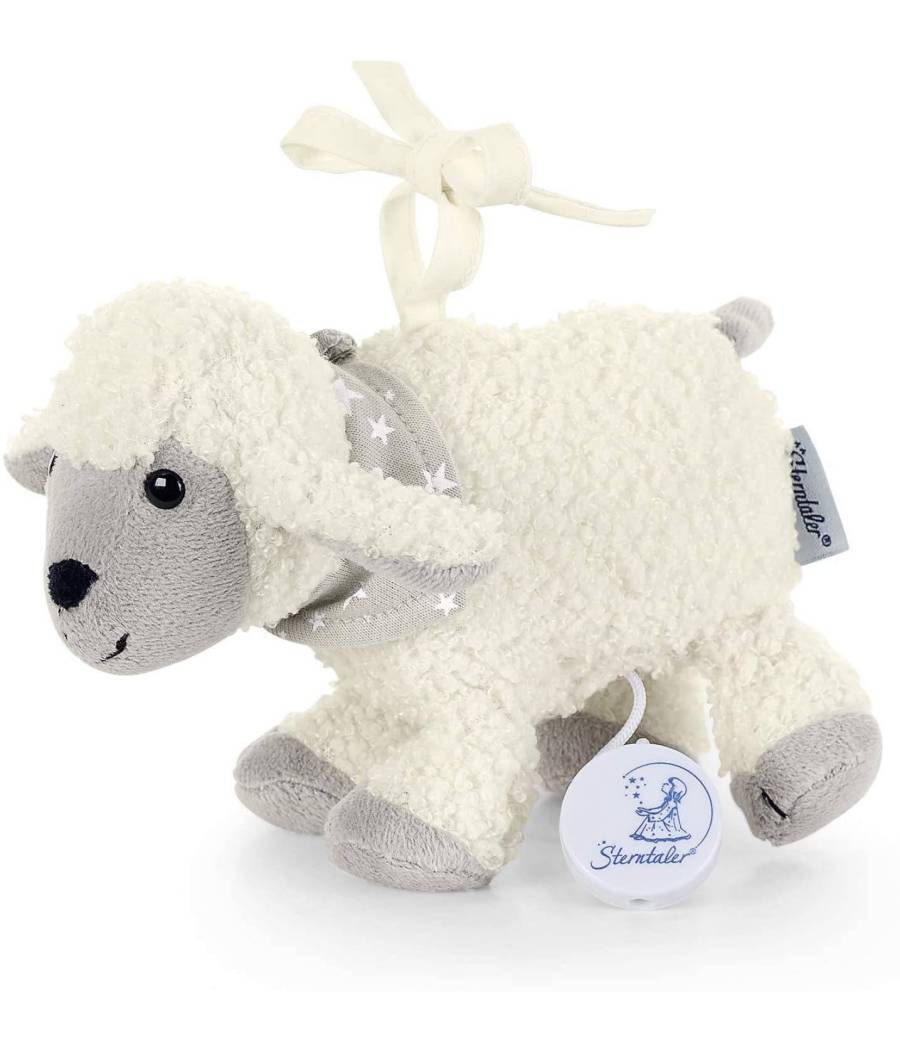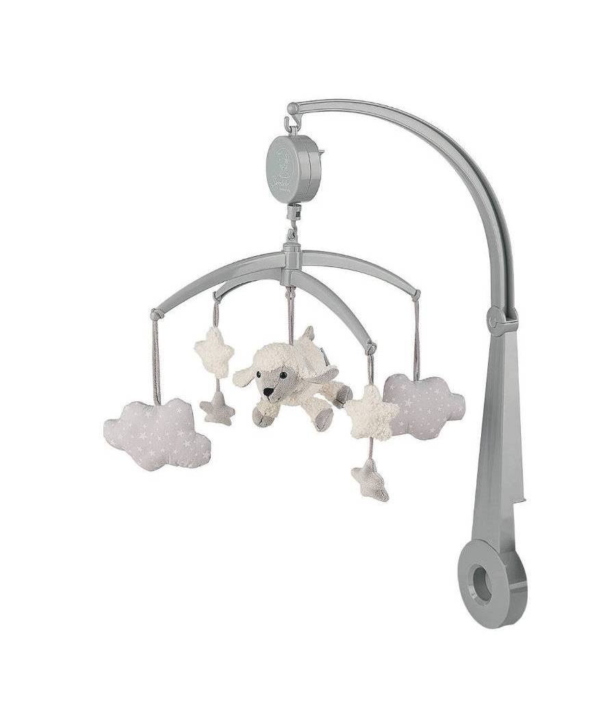 Móvil musical con la conocida oveja Stanley hecho de lana y jerse.