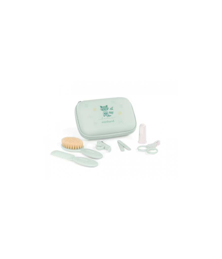 Este completo set se compone de los elementos imprescindibles en el cuidado del día a día del bebé: un peine, un fantástico cepillo, unas prácticas tijeras, un cepillo de dientes de dedal de silicona, un corta uñas y unas limas para las uñitas del bebé. Su simpático diseño lo convierte en el kit ideal para regalar.