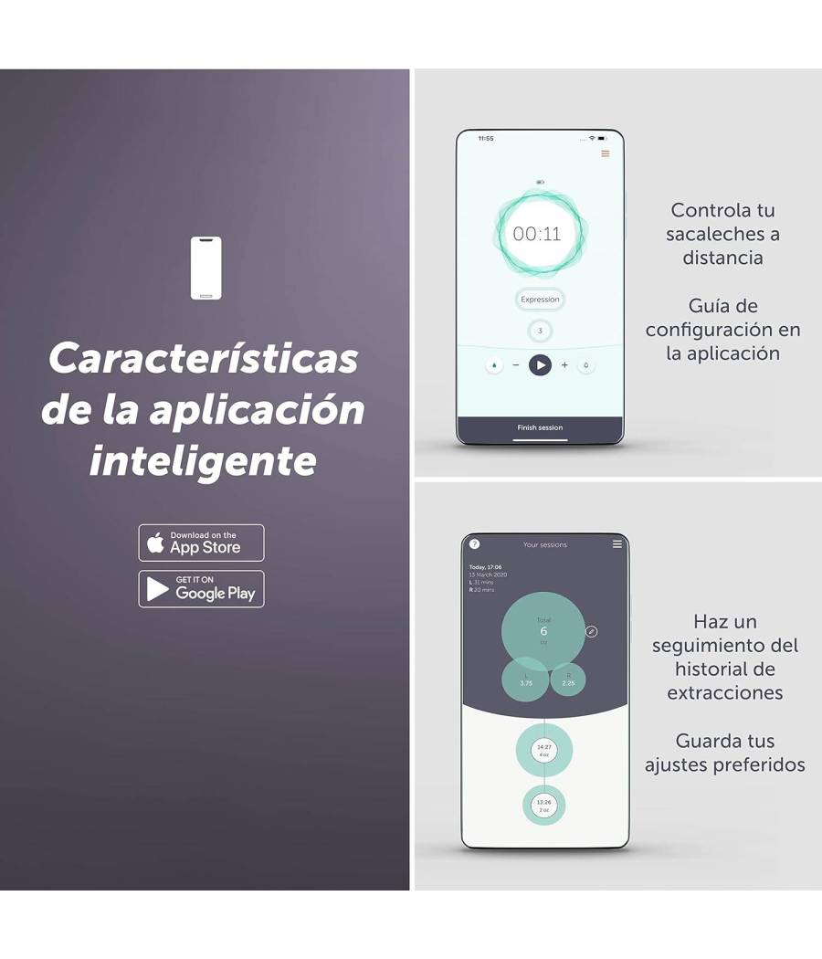 Podrás controlar remotamente el sacaleches y realizar el seguimiento del historial de extracción de cada pecho.