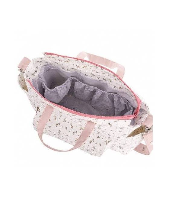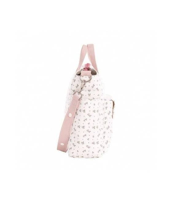Su sistema de asas cortas lo hace útil tanto como bolso de mano o maletín así como de bandolera o incluso para el carro, ya que el asa larga dispone de clips para poder colgar del cochecito.