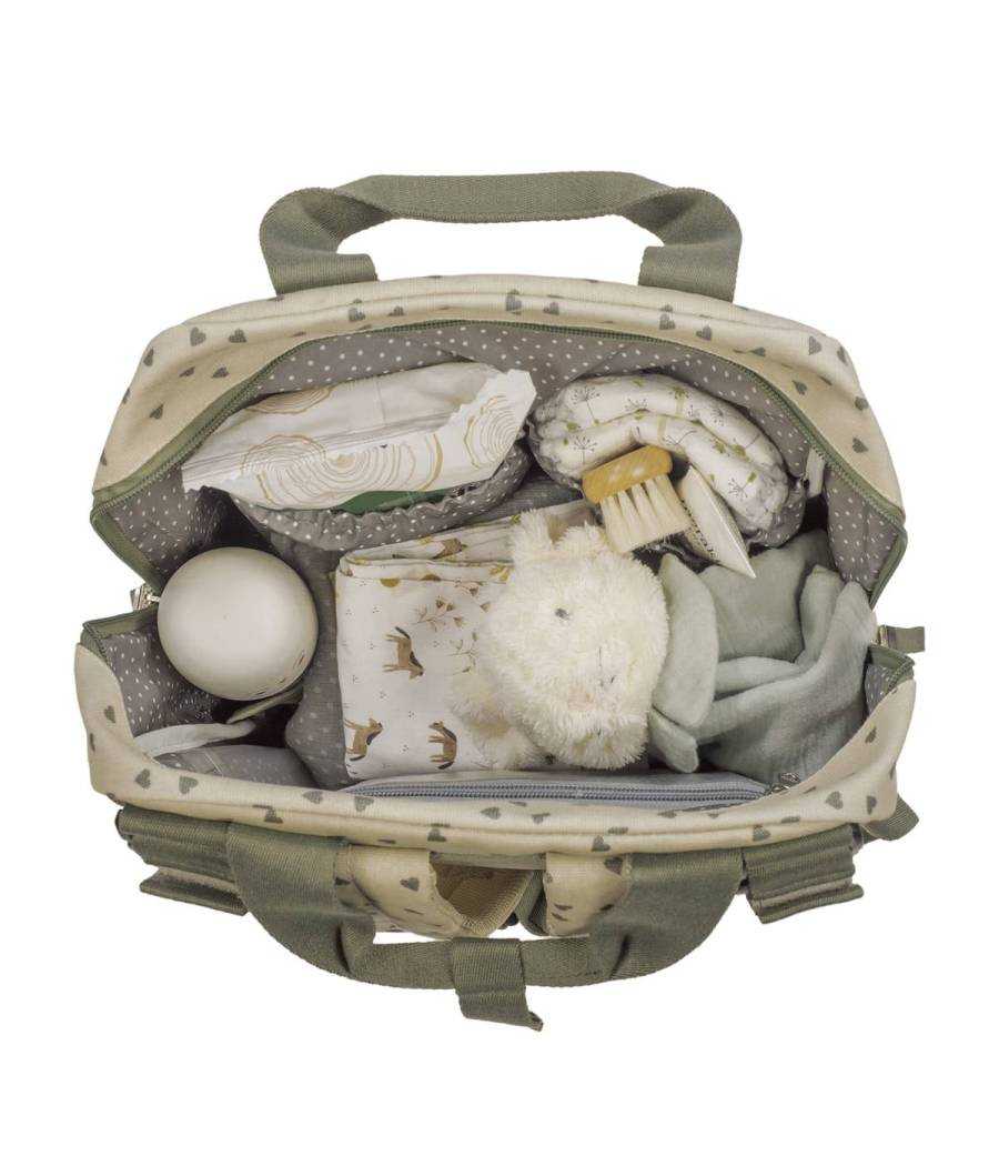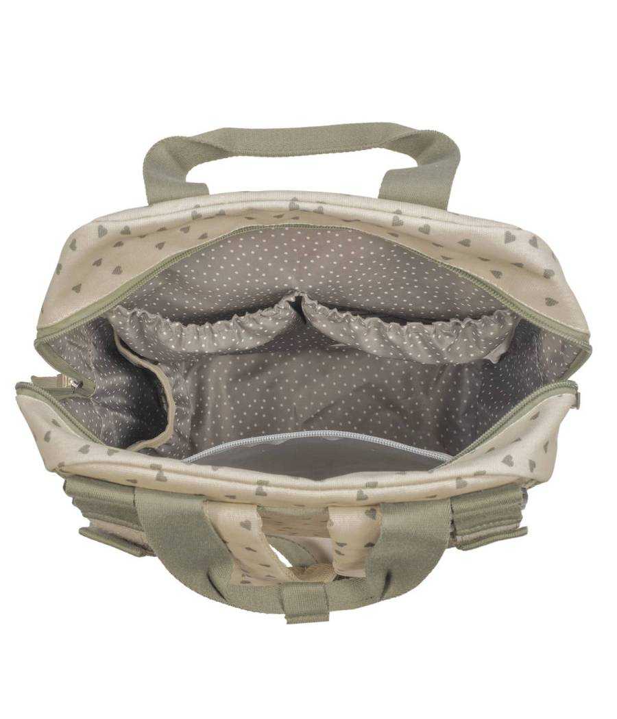 Consta de múltiples bolsillos exteriores e interiores para poder tener todo ordenado y a mano: para guardar biberones, toallitas, ropa mojada, etc.