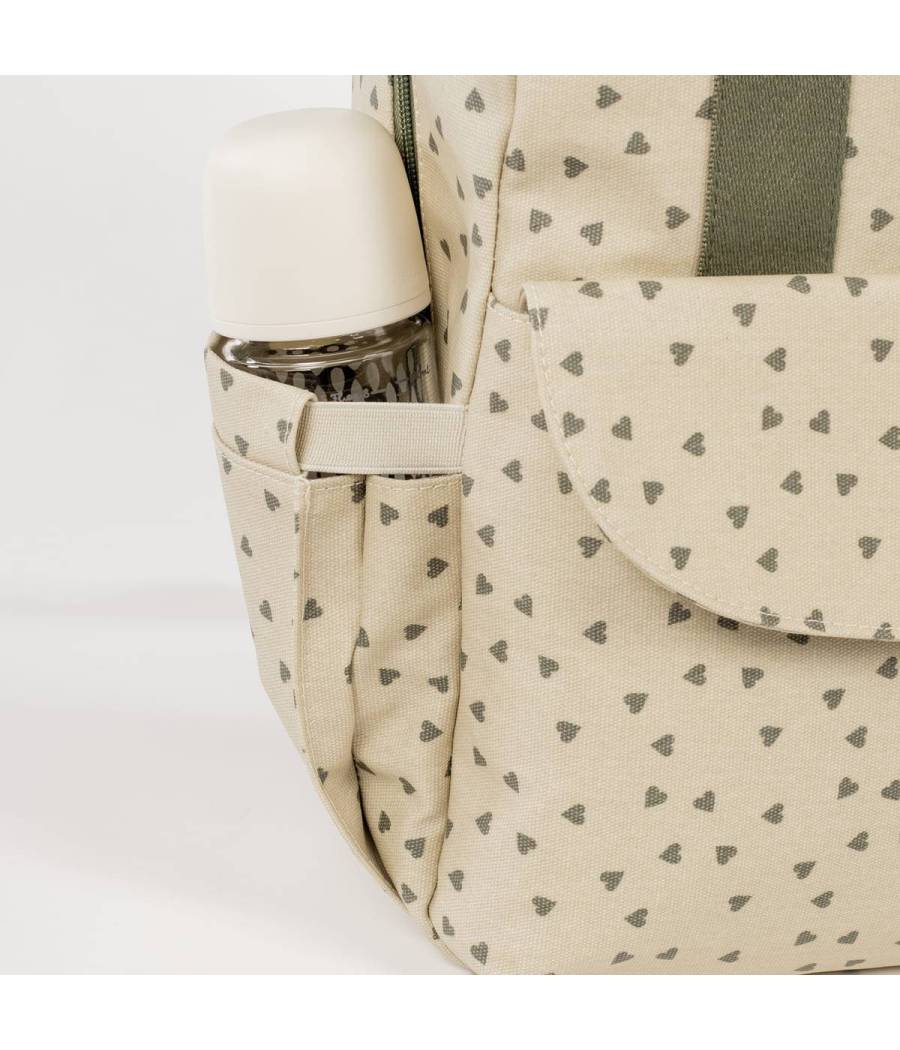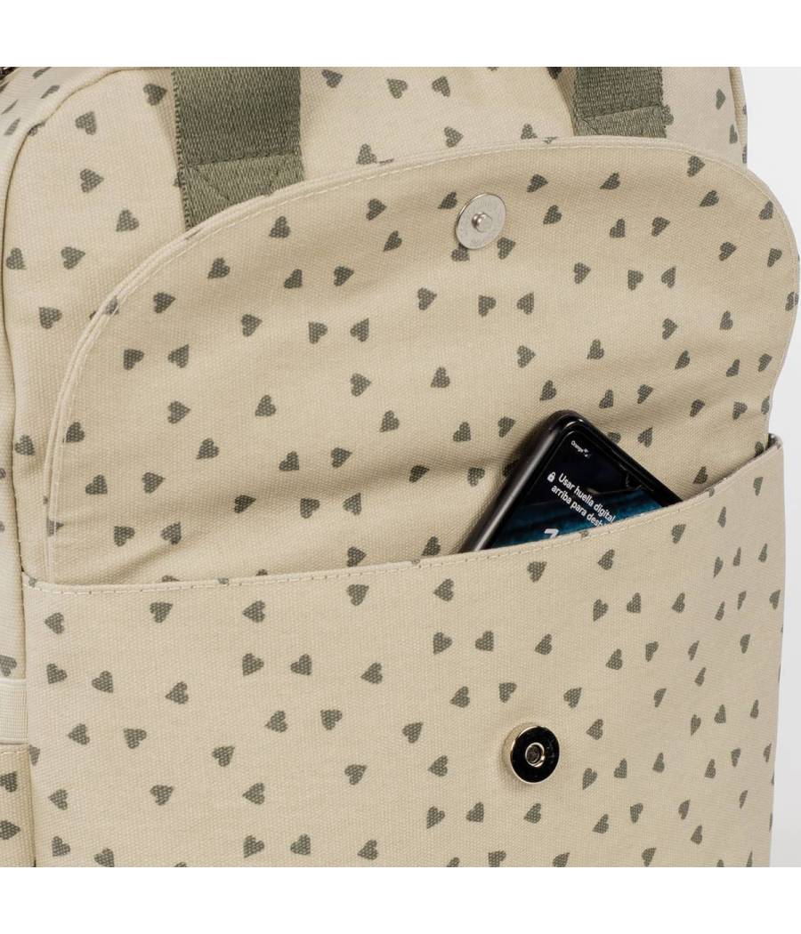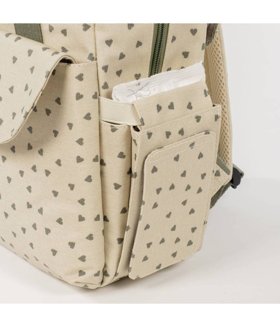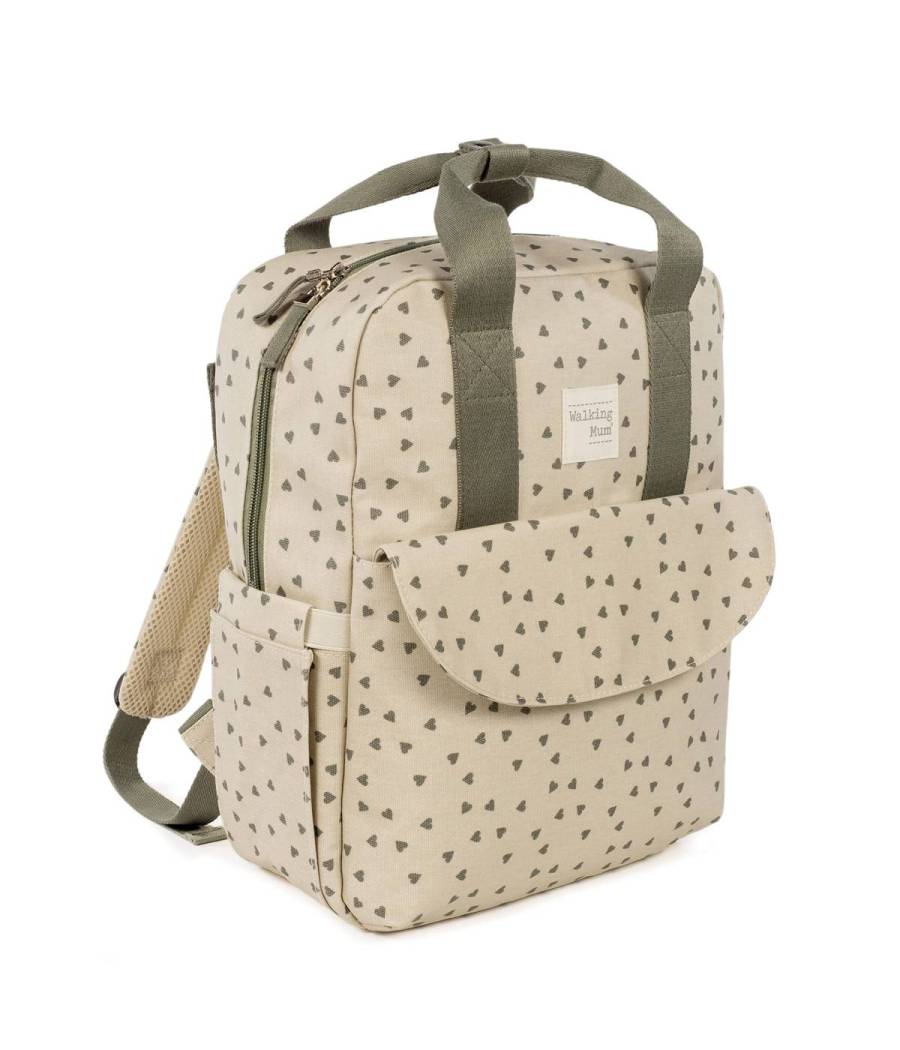 La mochila maternal Poppy Corazones de Walking Mum es una bolsa canastilla y mochila, muy moderna y urbana, ideal para llevar tus cosas y las de tu bebé.