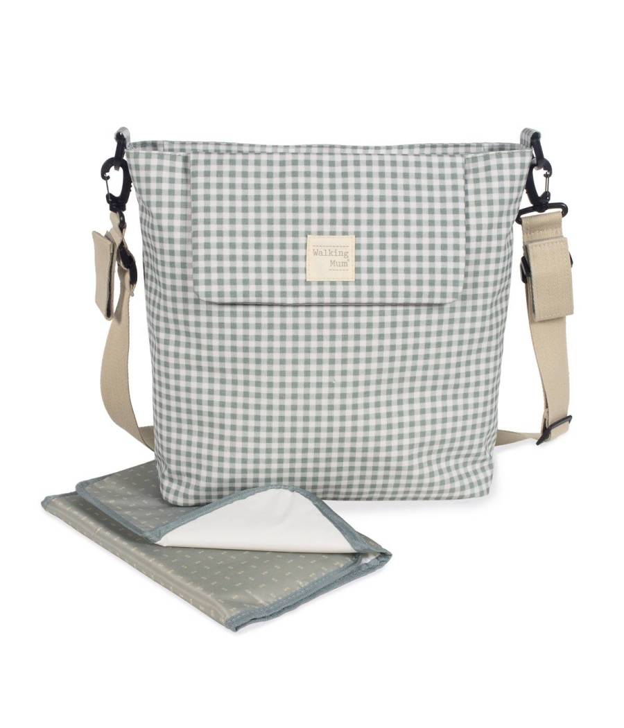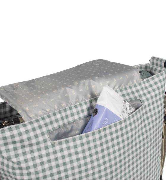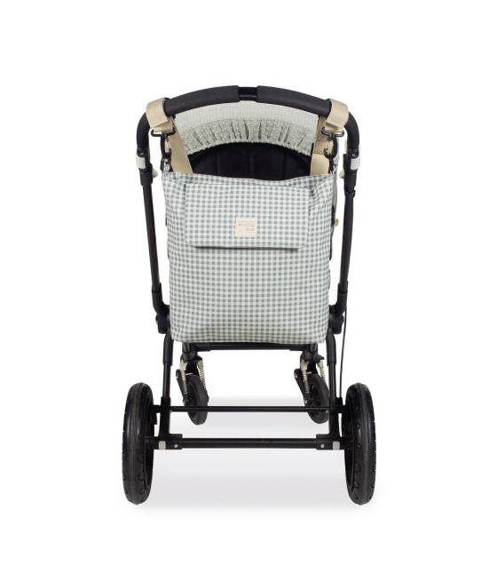 Bolso cambiador I Love Vichy verde para silla de paseo que incluye cambiador para bebe.
