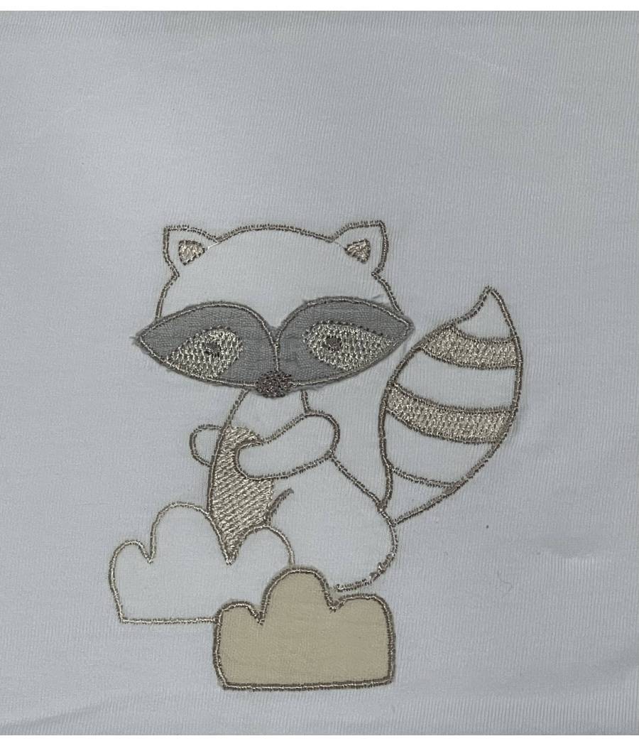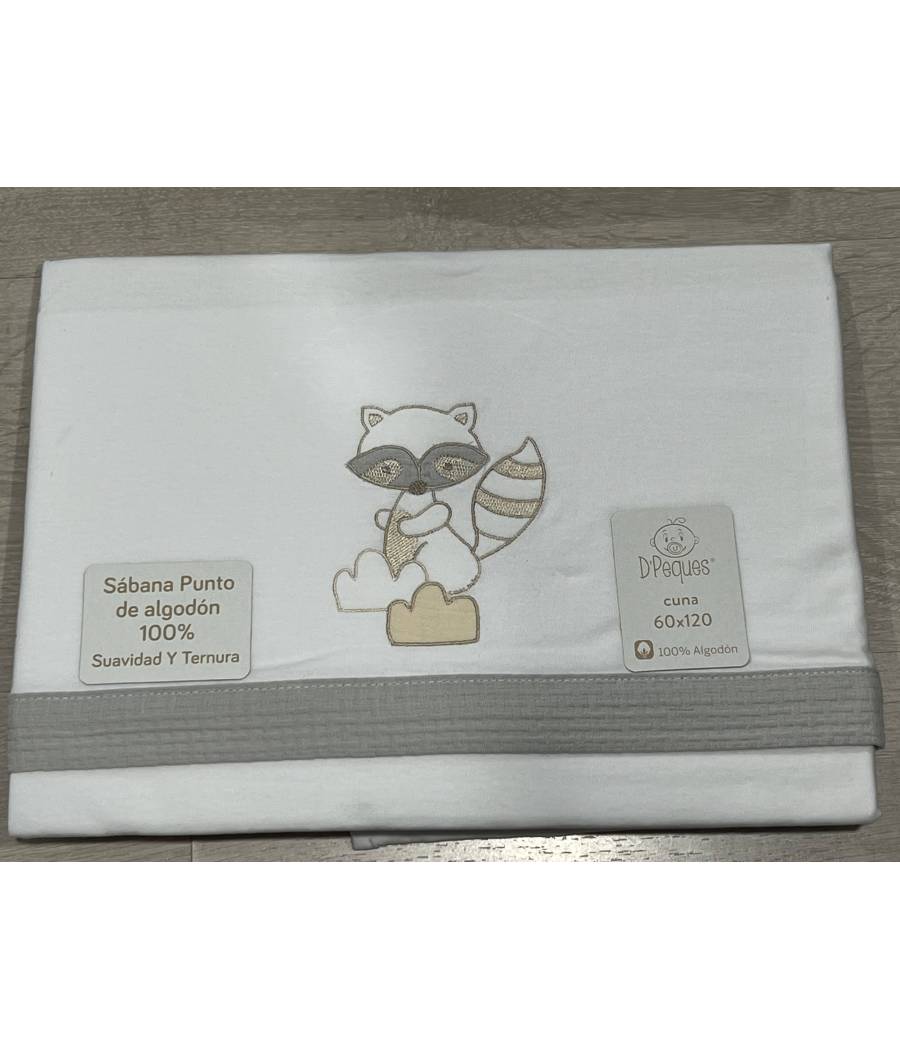 Diseño: Precioso Mapache colores gris y beige. Embozo en pique gris. Sabana bajera en blanco.