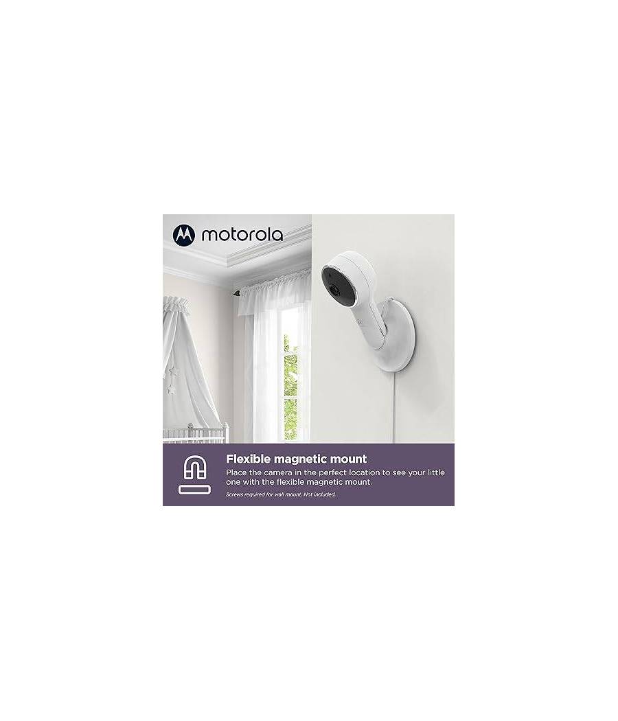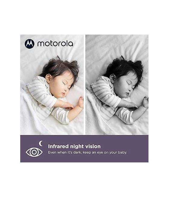 Este monitor para bebés con video cuenta con una pantalla de 4.3 pulgadas y una cámara con giro, inclinación y zoom digitales que se conecta a nuestra aplicación a través de Wi-Fi para habilitar video HD de 1080p y establecer una conexión privada y segura; el mando a distancia completamente cargado tiene una duración de batería de 5 horas.