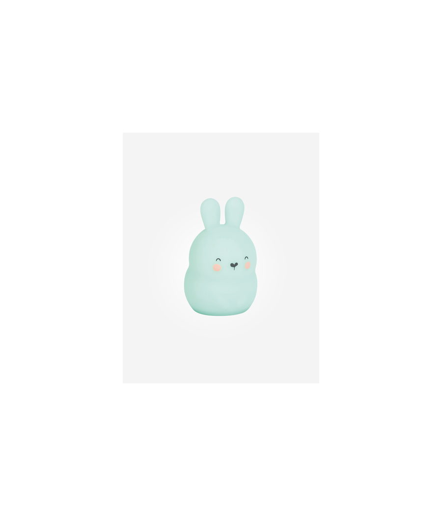 Lamparita quitamiedos de silicona, con forma de conejito verde menta.