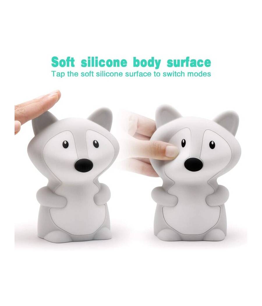 Lámpara suave y segura con luz nocturna que tranquilizará al bebé durante su descanso. Gracias a su material extra suave, el bebé puede abrazarlo hasta que se duerma observando los efectos de la luz multicolor.